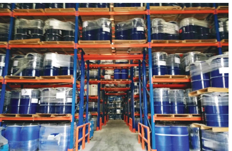 Specialized pallet racking system designed for safe chemical storage at CPIC Fiberglass facility. This project addressed the unique challenge of handling chemicals and fragile fiberglass materials safely while maintaining high storage density.